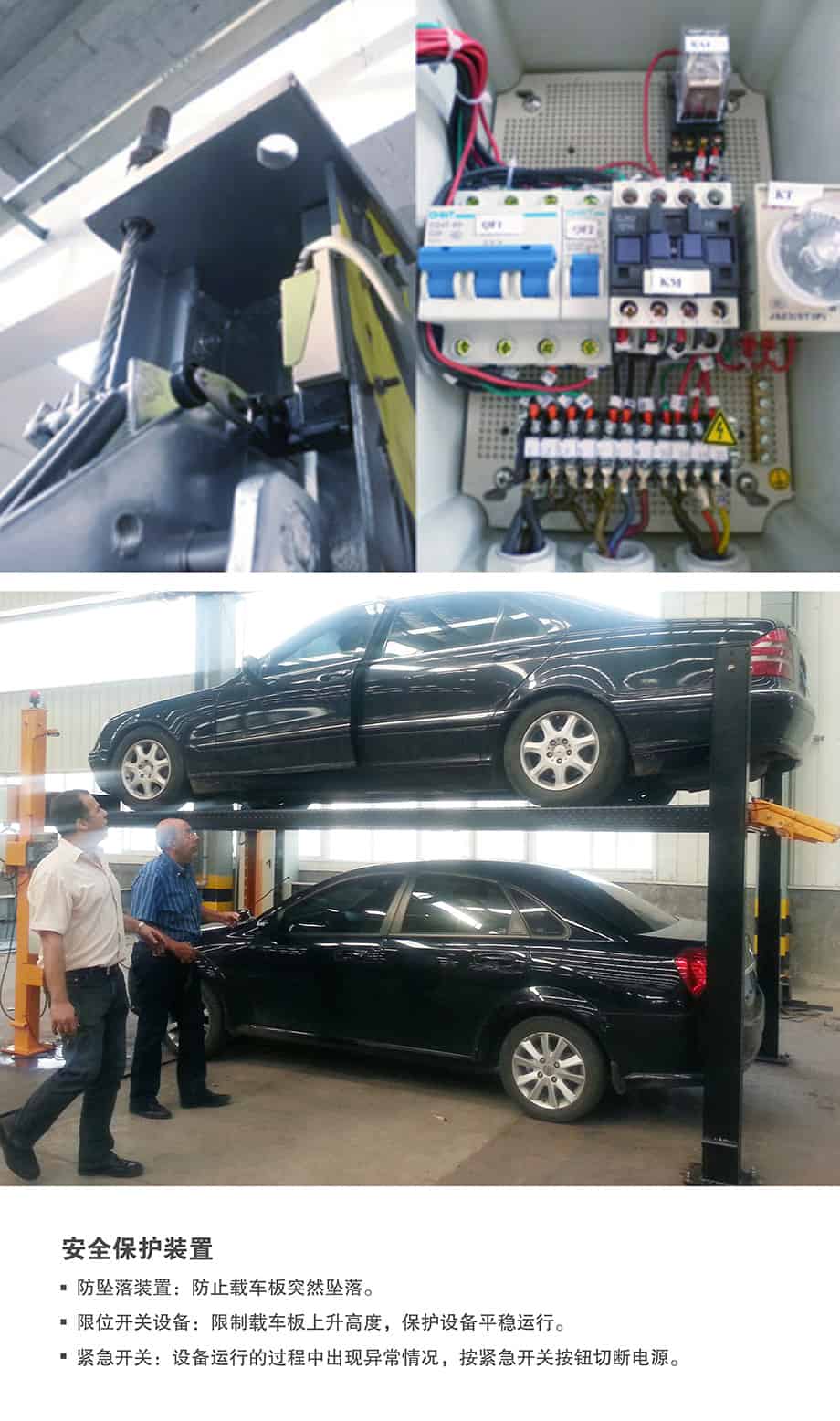 PJS四柱简易升降机械车位上下车位为一个单元,下层车位可直接存取车辆,存取上层车辆时,需将下层车辆开出。设备前方出入口没有任何柱梁及悬吊设施,更方便车辆的出入。采用先进的液压传动系统,液压泵输出高压油推动液压缸,液压缸带动钢丝绳,实现载车板同步平稳上升或下降,达到存取车的目的;升降时间短,取车迅速,一般在40秒以内。